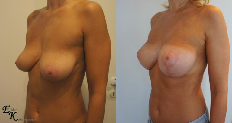 Делала грудь у доктора, на консультации сказал, что подтяжка не нужна и максимум можем поставить 295 мл, есть асимметрия, но коррекция не понадобится, по итогу можно было поставить больше и разного размера для коррекции асимметрии, нужна подтяжка, один шов некрасивый и потеря чувствительности у соска, на осмотре развел руками. Недовольна эстетической стороной. Фото в профиле сплошь красивые, раз так доволен результатом, то почему нет моего?!