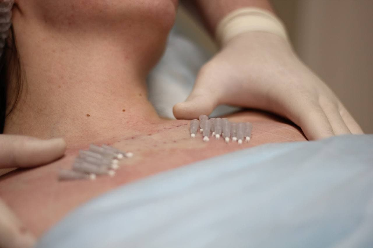 Подтяжка груди нитями — это минимально инвазивный метод коррекции формы груди, при котором ткани подтягиваются с помощью каркаса из специальных тонких нитей. Грудь приподнимается и визуально увеличивается за счет введения нитей в ткани на небольшую глубину и крепления к ключице. В отличие от традиционной подтяжки груди, нитевой лифтинг не требует общего наркоза, разрезов и длительной реабилитации. Однако процедура подходит далеко не всем, а ее результаты не так заметны.