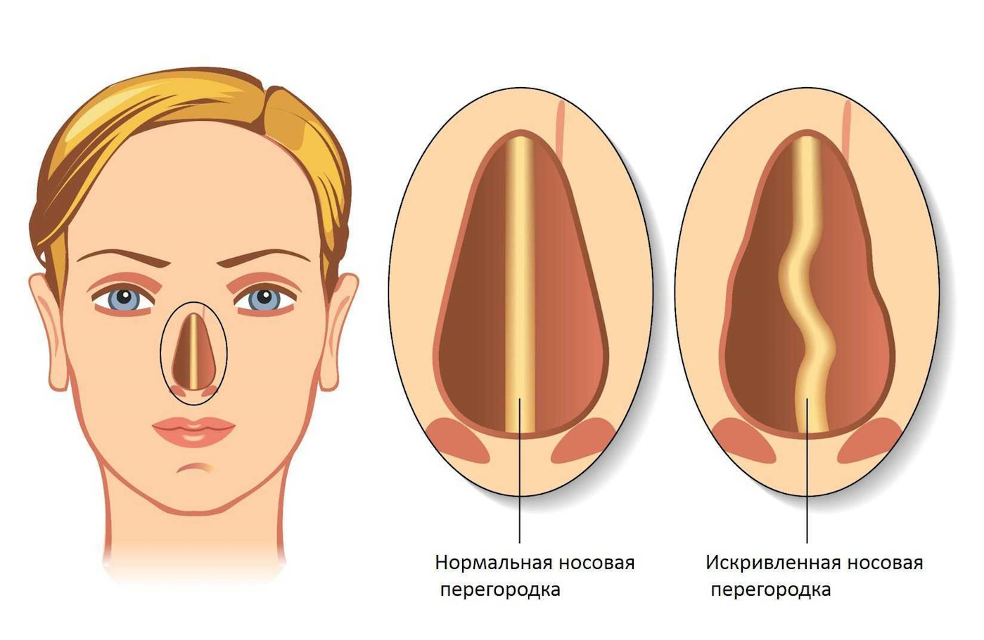 Основные причины деформации носовой перегородки: