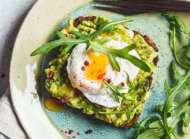 В дополнение к полезным свойствам авокадо, кусочек тоста из цельного зерна также будет способствовать увеличению содержания клетчатки в блюде, а цельное зерно отлично подходит для здоровья кишечника и поддержания баланса микробиоты. Кроме того, яйца являются прекрасным источником белка, а белок помогает снизить аппетит и чувство голода, а также укрепить мышцы и кости.