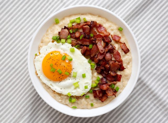 Исследования показывают, что потребление примерно 30 г белка за завтраком помогает стабилизировать уровень сахара в крови в течение всего утра, а также питает энергией на весь день. А если сочетать высококачественный белок с такими богатыми клетчаткой продуктами, как овсяная крупа, то это дает дополнительные преимущества, позволяя быстрее насытиться и дольше оставаться сытым после еды. Добавление таких пикантных ингредиентов, как говяжья колбаса для завтрака или яйцо - прекрасные способы добавить высококачественный белок и питательные вещества к утренней овсянке.