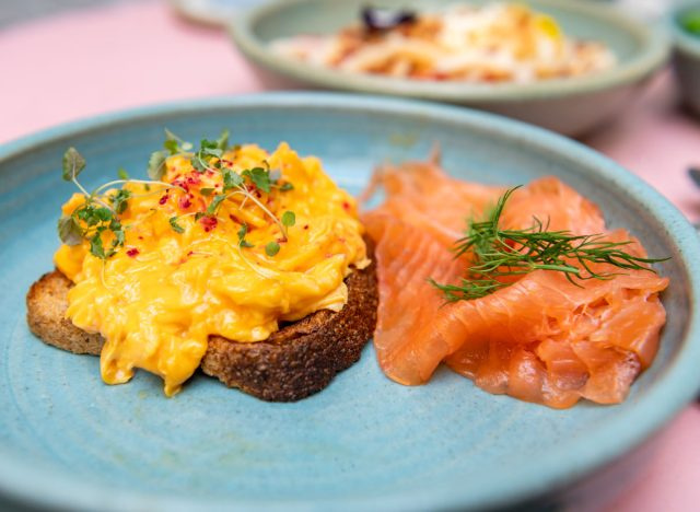 Попробуйте приготовить яичницу с лососем на ломтике цельнозернового хлеба.