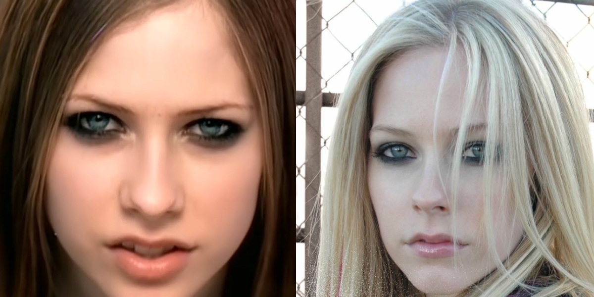 В самом начале карьеры Лавин выглядела совсем по-другому. Мальчишеская одежда, русые волосы и широкий нос: именно такой ее запомнили миллионы подростков начала 2000-х. Сейчас Аврил — женственная блондинка с изысканным и симметричным носом.