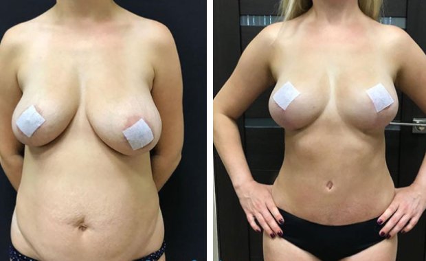 Пациентка О. А. Ованесовой до и после маммопластики и абдоминопластики