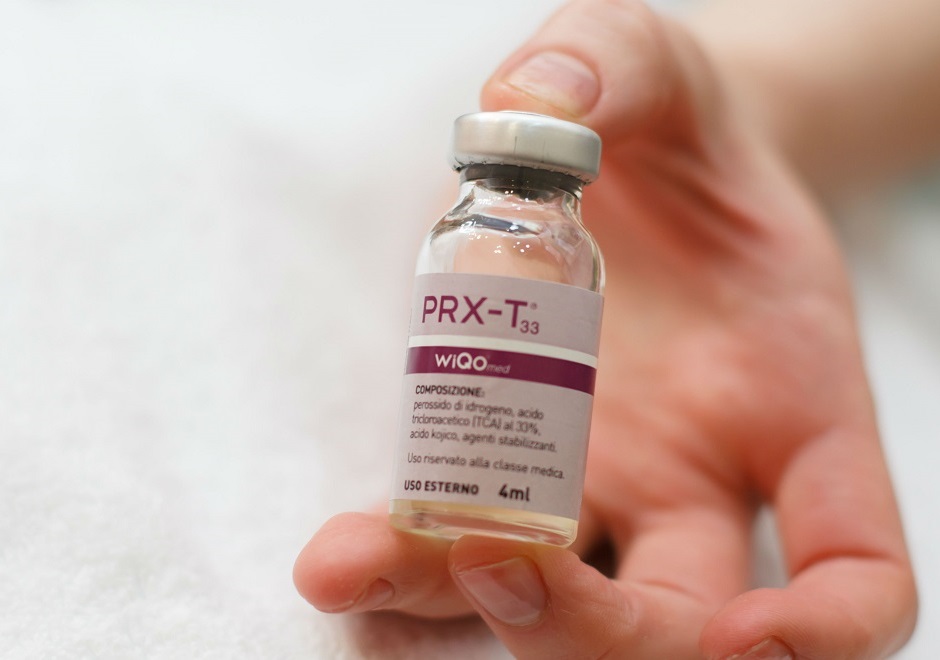 PRX-T33 – срединный химический пилинг. Препарат разработан и запатентован итальянской фармацевтической компанией WIQO med (GPQ Srl). Производитель обещает, что сразу после нанесения состав проникает в кожу, разрушает омертвевшие частицы эпидермиса, не повреждая при этом здоровые ткани, снимает воспаления, запускает процессы регенерации, активизирует клеточный метаболизм и оказывает мощное омолаживающее действие.