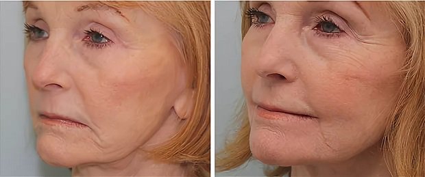 В данном случае также приподнимаются уголки губ. Только работа происходит не с мышцей, а с тканями. После ушивания крошечных надрезов по краям губ зона вокруг рта выглядит значительно моложе. С лица исчезает грустная и унылая маска. Швы, как правило, накладываются с помощью саморассасывающихся нитей, а реабилитация занимает около недели.