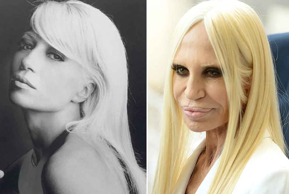 Дизайнер и вице-президент компании Versace Group никогда не была классической красоткой, хотя в юности выглядела весьма неплохо. Однако на внешнем виде пагубно сказывались увлечения алкоголем и наркотиками. Чтобы стереть следы зависимостей, Донателла раз за разом обращалась за помощью к пластическим хирургам. В начале двухтысячных эстетическая медицина еще не была столь развита, как сейчас, и многочисленные инъекции, подтяжки, шлифовки и несколько ринопластик только усугубили ситуацию. В результате знаменитая блондинка потеряла былую красоту и стала похожа на резиновую куклу.