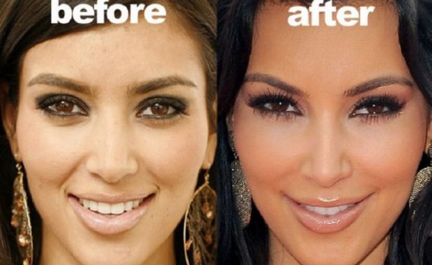 Еще одна особенность Ким, которая, вроде, бы ничего не скрывает от публики (ни свою обнаженную натуру, ни семейные скандалы, которые ежедневно транслируются в реалити-шоу), - это заявления о том, что она никогда не прибегала к пластическим операциям. Она уверяет, что вся ее красота – это результат удачного макияжа, подходящих нарядов и правильного освещения на фотосессии. Хотя сравнивать фото до и после славы Ким Кардашьян можно, как в игре «Найди десять отличий»: нос, подбородок, разрез глаз, объемные грудь и ягодицы, идеально ровный лоб – все это намекает на то, что она пользовалась не только услугами визажиста, стилиста и фотографа.