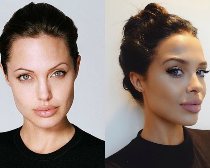 Косметологи и пластические хирурги не устают благодарить Анджелину за ее объемные губы и очерченные скулы. В сети можно найти множество двойников Анджелины Джоли, в числе которых есть и отечественная it-girl Виктория Боня.