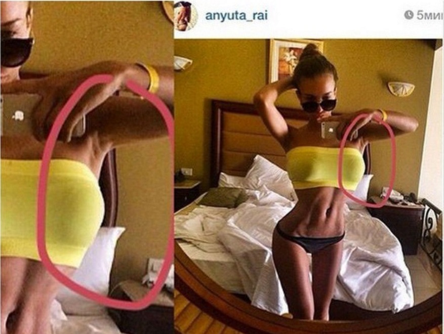 Пользователи Интернета много раз замечали то, что модель не умеет пользоваться фоторедактором. Создавая пышную грудь и узенькую талию на фото, Анна искажает пространство в помещении. Подписчики намекнули девушке, что подлог слишком явный, и фоторедакторы не ее конек.