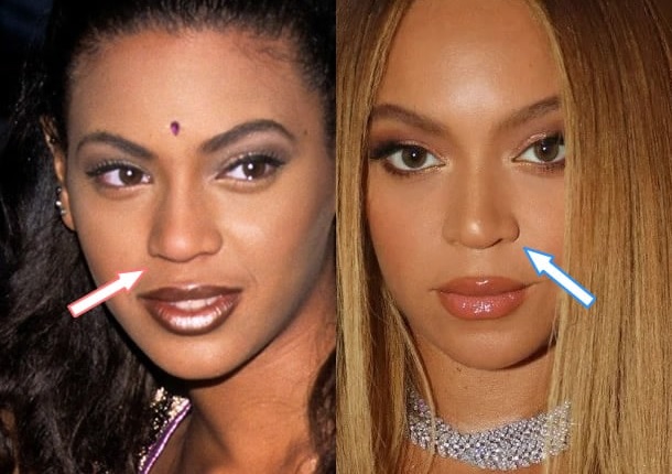 Внешний вид носа Бейонсе изменился со временем, что заставляет многих специалистов предположить, что она сделала ринопластику. Сравнив её старые и новые фотографии, можно заметить, что её нос стал более узким и заостренным. Однако стоит учитывать, что такие изменения могли быть достигнуты и с помощью макияжа и контурирования.