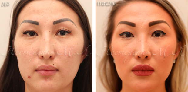 Пациентка доктора Нестеренко до и после ринопластики