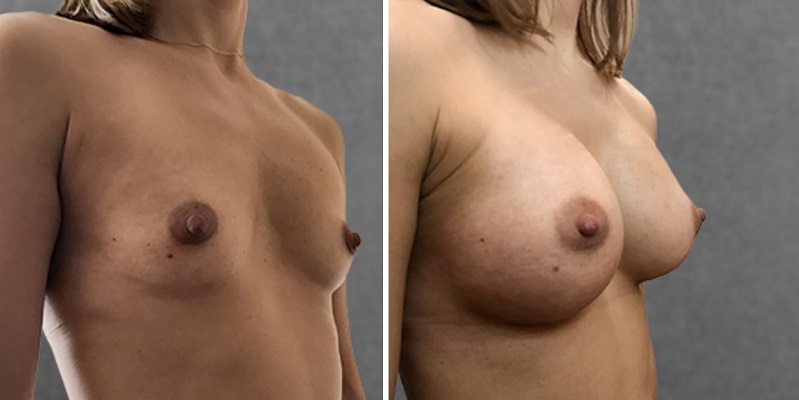 Установка имплантов позволяет полностью восстановить утраченный объем, а при желании и добавить немного смелости! Также с помощью имплантов можно не только вернуть, но и выбрать форму: каплевидные импланты обеспечат естественный вид, круглые — дадут выраженный эффект «пуш-ап». При умеренной растяжке кожи мастопексия может не потребоваться, так как имплант подтягивает кожу за счет собственного объема.