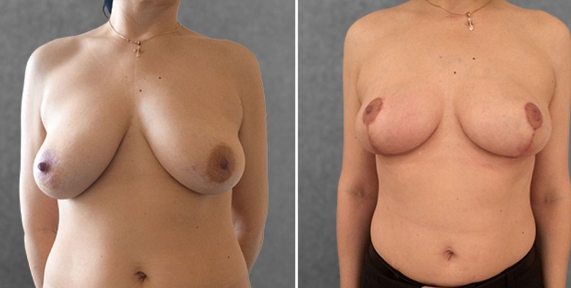 Если грудь заметно опустилась, а увеличение объема не входит в планы, подтяжка — лучший выбор. Хирург удаляет лишние ткани, фиксирует связки, формируя красивую форму. Во время операции регулируют размер ареолы и форму сосков.