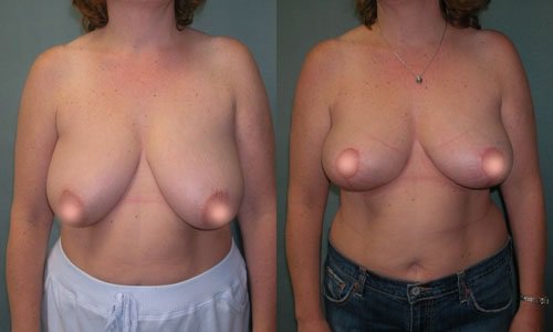 При умеренном опущении молочных желез специалисты рекомендуют вертикальную мастопексию с дополнительными разрезами от ареолы вниз к подгрудной складке.