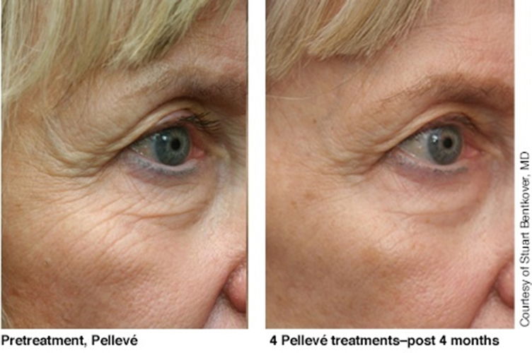 Запатентованная компанией Ellman International, Inc система удаления морщин без боли, игл, скальпеля и долгой реабилитации разглаживает кожу, медленно нагревая глубокие слои тканей. Радиоволны Pelleve доставляют тепло на нужный уровень и запускают выработку новых волокон коллагена без повреждения поверхности кожи. Образовавшийся коллаген сразу же визуально омолаживает кожу, но пик преображения приходится на вторую–шестую неделю после процедуры. Pelleve обеспечивает длительную красоту: минимум на протяжении года лицо подтянуто, свежо и молодо без особых затрат. Сама процедура несет умиротворяющее расслабление и больше похожа на сеанс в spa: система деликатно воздействует на ткани, как солнечные лучи или разогревающий массаж. Это уникальное безоперационное омоложение проводится без анестезии и реабилитации: после сделанной в обеденный перерыв процедуры никто не догадается о причинах перемен к лучшему. Преимущество метода, разработанного Ellman Intarnational Inc, заключается в том, что косметолог может адаптировать силу воздействия индивидуально для каждого пациента в зависимости от состояния кожи. Врач может уделить больше внимания зоне вокруг глаз, щекам или овалу лица. Специалисты рекомендуют провести два или три сеанса Pelleve для накопительного эффекта и даже комбинировать методику с другими процедурами.