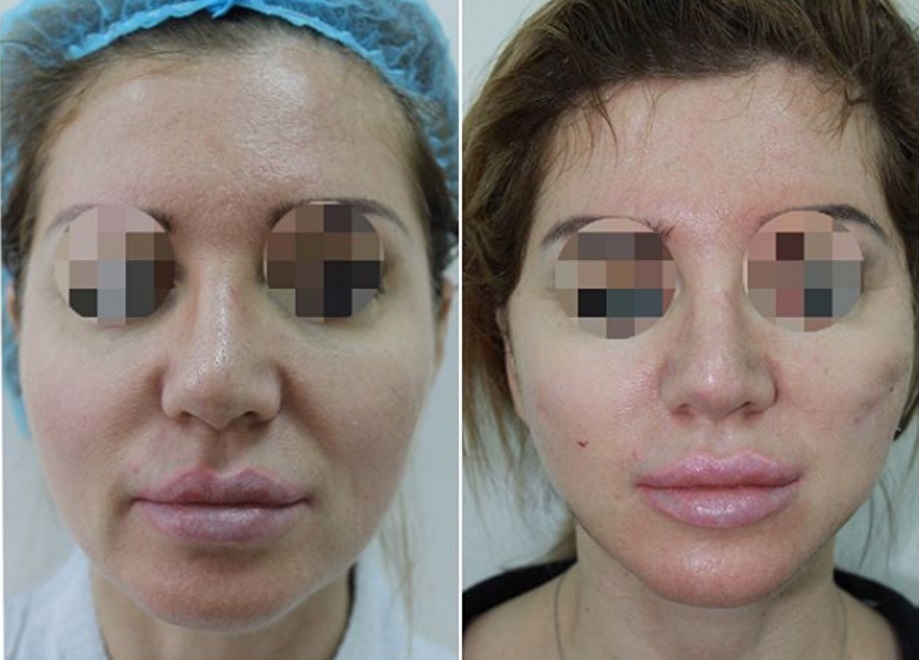 Фото до и сразу после введения хирургических нитей