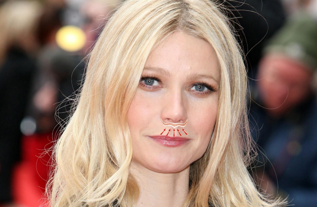 На примере Гвинет Пэлтроу видно, какая часть над губами удаляется методом «Булхорн»