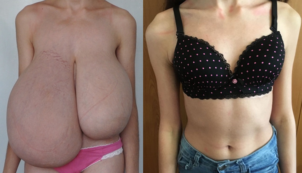 Глянцевые журналы, телевидение и социальные сети транслируют идеал внешности – женщину с пышной грудью, узкой талией и округлыми бедрами. Но иногда большая грудь становится источником больших проблем. Так девушка Дарья столкнулась с неразрешимыми на первый взгляд трудностями: после 16 лет ее грудь резко увеличилась и через полгода достигла гигантского размера. Ситуацию усугубляла асимметрия: молочные железы росли неравномерно. Нехарактерная для хрупкой юной девушки грудь повлияла на образ жизни: Даша замкнулась в себе, перестала ходить в школу и общаться с друзьями, мечтала избавиться от тяжелого груза. Врачи из родного села не помогли девочке, и тетя отвезла Дарью в областной центр. Несовершеннолетнюю пациентку могли госпитализировать лишь в отделение детской хирургии, но там такие задачи не решали. Неравнодушные врачи обратились к московским специалистам, и на просьбу провести бесплатную операцию откликнулся пластический хирург центра DoctorPlastic Дмитрий Труфанов. Операция проводилась на базе детской областной больницы – закон запрещает оперировать пациентов до 18 лет в условиях «взрослых» клиник.