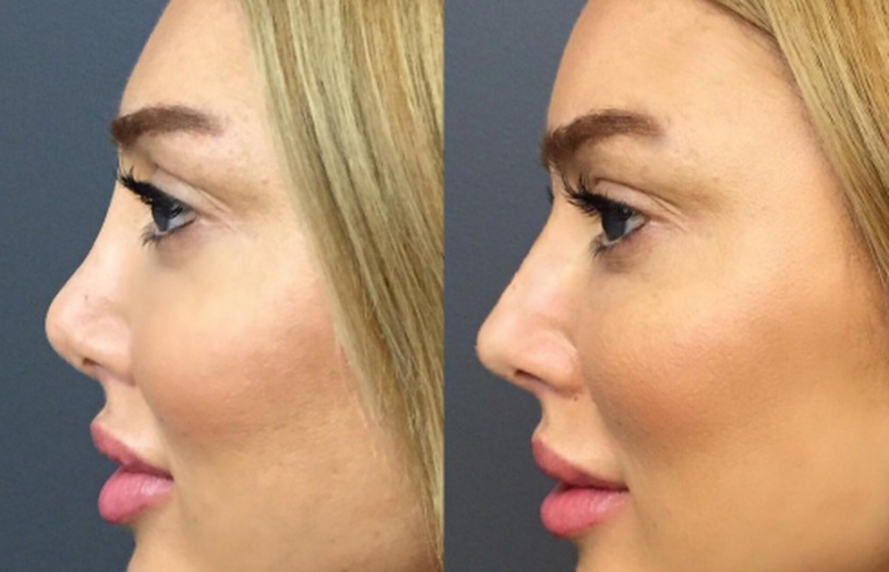 Фото до и после ринопластики с установкой импланта