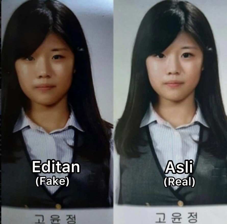 Как вы можете заметить, на фейковой фотографии слева у Чжон отредактированы глаза. Это было сделано для того, чтобы использовать эту фотографию в качестве доказательства о проделанной пластической операции Сангапури, иначе говоря, блефаропластики азиатских век. Но справедливость восторжествовала: реальную фотографию тоже опубликовали, что развеяло все слухи.