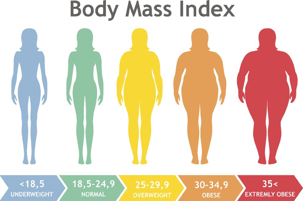 Индекс массы тела у мужчин и женщин