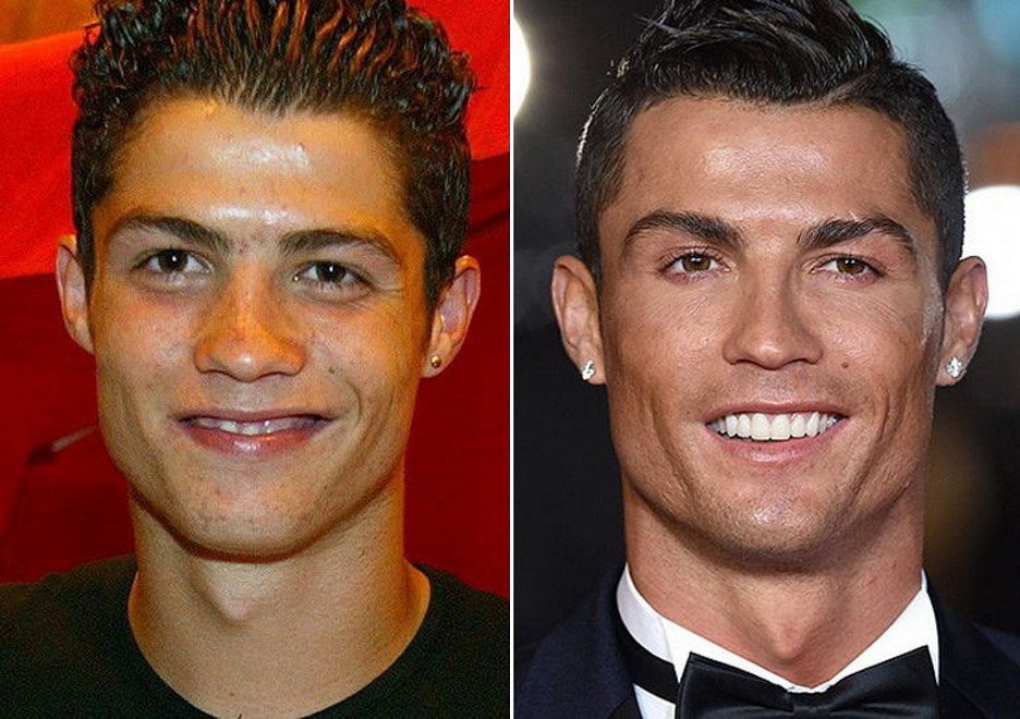 Ну и, конечно, один из самых красивых мужчин планеты Криштиану Роналду тоже исправил свой нос, правда, в основном из эстетических соображений. Португалец сузил спинку носа и изменил форму кончика, используя для этого закрытую методику коррекции. Говорят, что это его единственная пластическая операция, а все остальные трансформации — дело рук профессионального косметолога и дантиста.