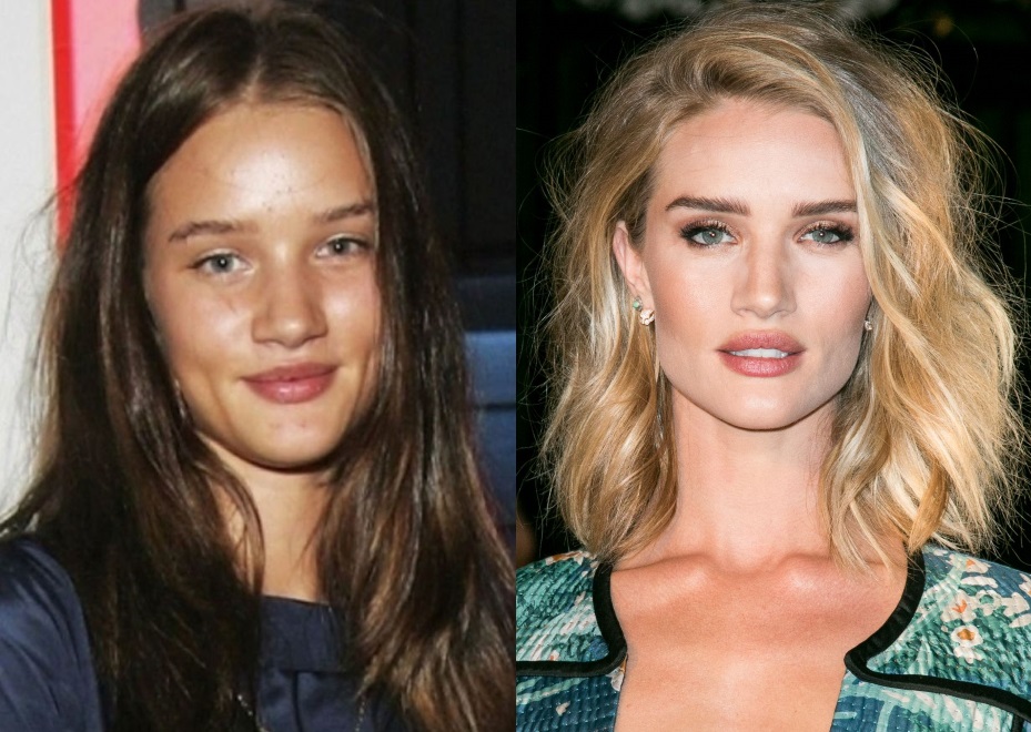У Хантингтон-Уайтли есть секрет увеличения губ: после душа она растирает их полотенцем, наносит бальзам, а затем рисует контур чуть выше естественной линии. Правда, некоторые эксперты считают, что пухлые губы Рози следствие не только генетики и косметических ухищрений, а грамотной работы косметолога: на определенных этапах карьеры верхняя губа меняла объем. Но это только догадки, а вот ринопластика не вызывает сомнений: подиум покоряла девочка с большим фактурным носом, а возлюбленной Стэтхэма стала уже красотка с изящным носиком.