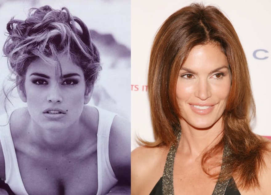 Первые фотографии Синди Кроуфорд в молодости беспощадно ретушировались, а модельные агентства предлагали удалить родинку. Синди сопротивлялась и вскоре превратила пятнышко над губой в фирменный знак.