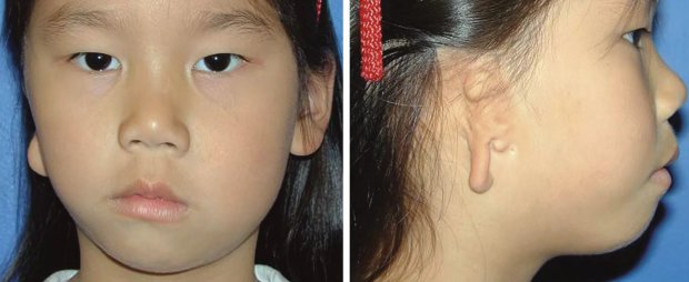 Такие врожденные патологии, как синдромы Конигсмарка или Гольденхара, могут вызывать деформацию или недоразвитость ушных раковин. В данном случае пластический хирург работает в тесной связи с ЛОР-врачом. Если последний дает разрешение, наружное ухо можно воссоздать. Для этого используется имплант, как правило, из реберной кости самого пациента. Возле недоразвитой раковины доктор создает карман, куда и устанавливает аутотрансплантант. Спустя примерно полгода, когда хрящевой каркас приживется, ему придают анатомическую эстетически привлекательную форму. Операция проводится под общим наркозом в 2-3 этапа по несколько часов.