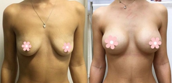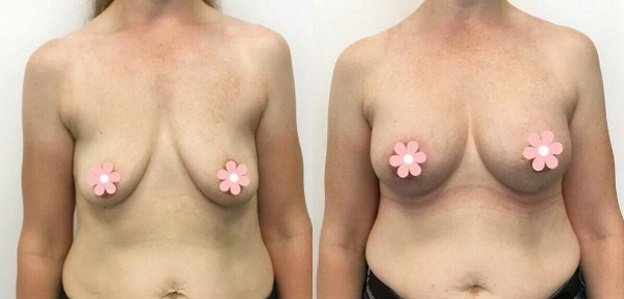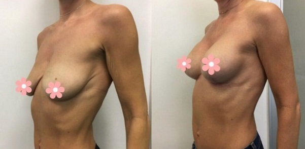 Пациенток, приходящих на консультацию к пластическому хирургу, часто беспокоит не только потеря объема груди, но и значительное опущение молочных желез. В таком случае сначала проводится подтяжка груди, а затем только устанавливаются импланты: увеличение птозной груди без подтяжки приведет к еще большему провисанию.
