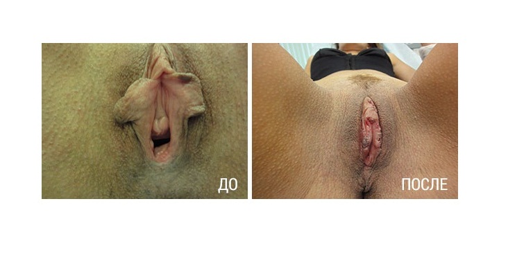 - При врожденных недостатках. Это может быть гипертрофия малых половых губ (то есть когда малые губы сильно выступают за пределы больших губ и создается впечатление, будто они болтаются) или их асимметрия. Такие проблемы связаны не только с эстетическим недовольством пациента, но и дискомфортом – половые органы трутся об одежду, мешают при занятии спортом. Другая частая причина обращения – гипертрофия клитора, который набухает и сильно выступает за пределы половых губ.