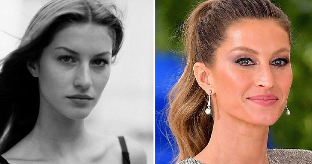 Жизель Бюндхен до и после ринопластики